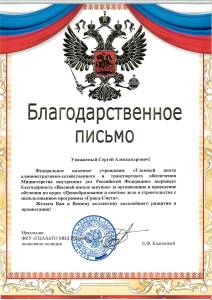 Федеральное казенное учреждение «Главный центр административно-хозяйственного и транспортного обеспечения Министерства внутренних дел Российской Федерации» выразило благодарность «Высшей школе закупок» за организацию и проведение обучения по курсу «Ценообразование и сметное дело в строительстве с использованием программы «Гранд-Смета».